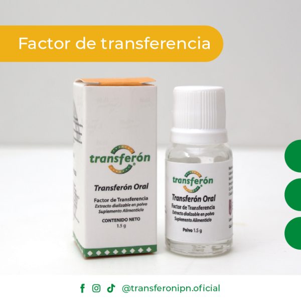Transferón Oral es un extracto dializable en polvo de leucocitos animales compuesto por mas de 400 moleculas peptidicas que IPN ha caracterizado y secuenciado al 100 %. Se trata de un compuesto activo que se obtiene a partir de la diálisis de leucocitos (glóbulos blancos), las células responsables de los procesos de inmunidad que actúan como defensa frente a la amenaza de un antígeno específico que puede tratarse de una bacteria, un virus, un parásito, un hongo o un alérgeno, impidiendo su desarrollo y promoviendo un efecto inmuno-estimulante que haga más efectiva la respuesta de inmunidad ante futuras amenazas.